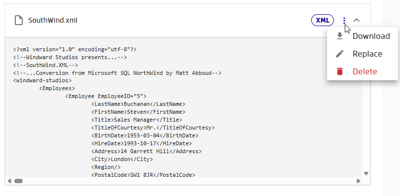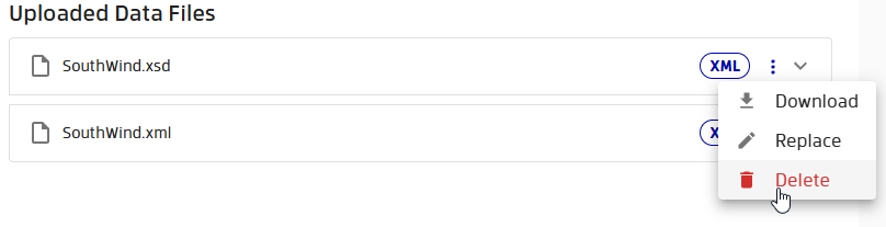 - Replace File: If your baseline data changes or your schema updates, you can easily swap out the old file. Use the Replace feature to upload a new version, which will seamlessly overwrite the existing file for that data source.