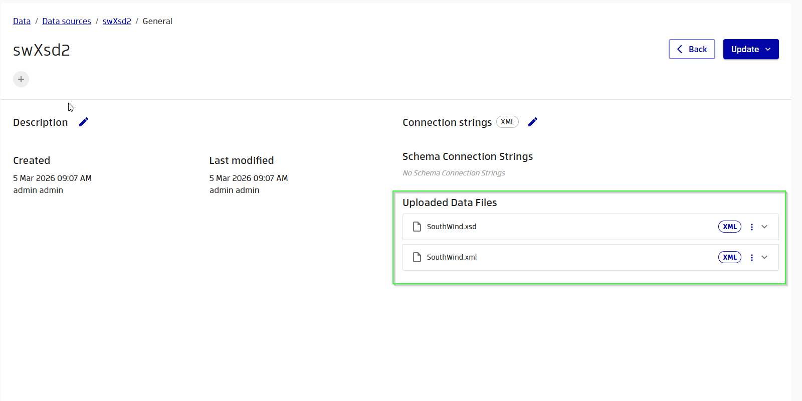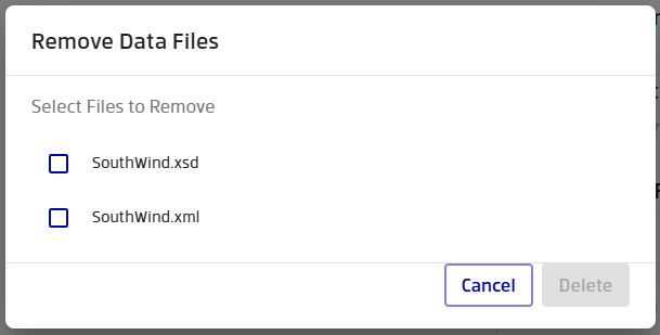 A single data source can require both actual data and a structural schema. If you upload both, the system automatically sorts them based on their file extensions: